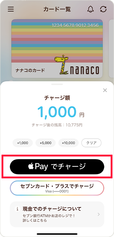 Apple Payにセブンカード・プラスのJCBブランドを設定して、Apple Payでnanacoにチャージすると、チャージ金額に対して200円ごとに1nanacoポイントがたまります。お買い物と合わせてダブルでたまります♪