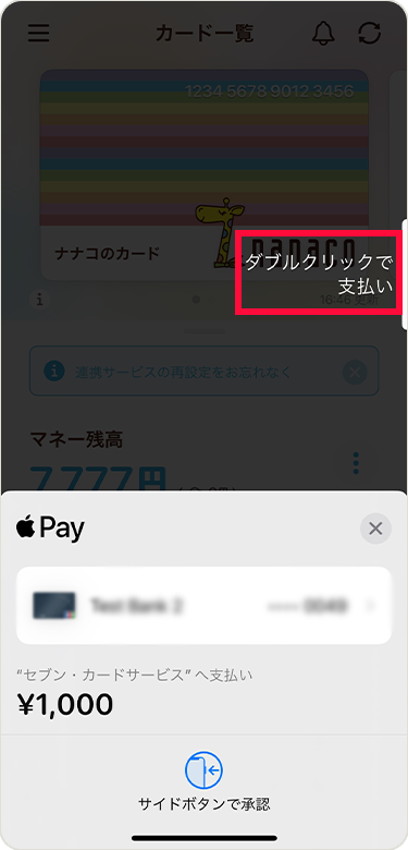 お手数ですが、Apple Payから一度セブンカードを削除し、改めてセブンカード・プラスを設定いただきますようお願いいたします。