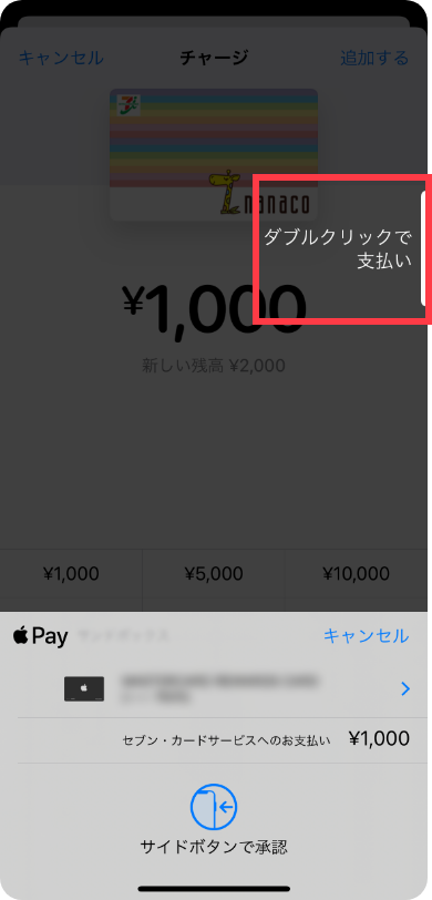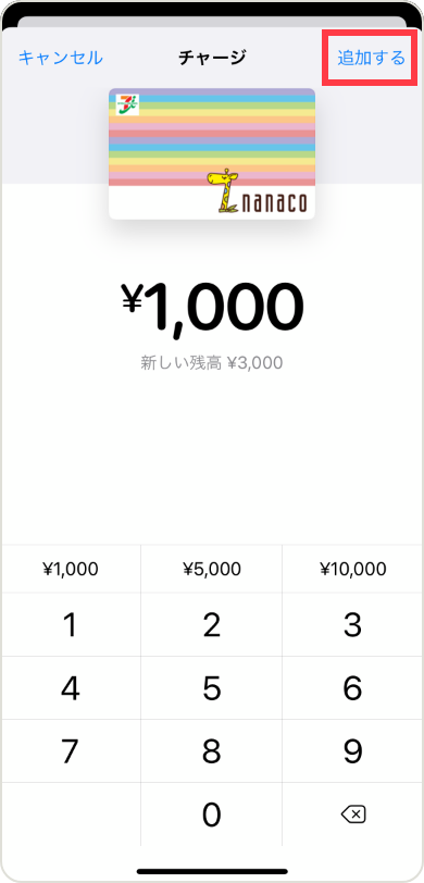 セブンカードを設定してApple Payでチャージされた場合は、ポイント付与の対象外となります。