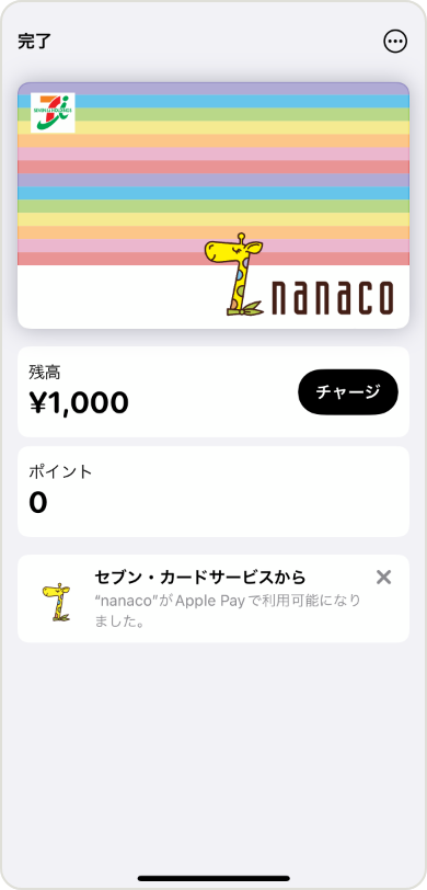 - ウォレットアプリで新しくApple Payのnanacoをつくる場合、発行時に最低金額1,000円のチャージが必要となります。