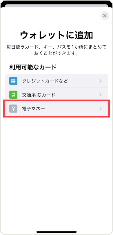 「電子マネー」をタップします。
