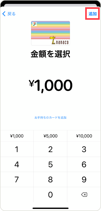 チャージする金額を選択し「追加」をタップします。