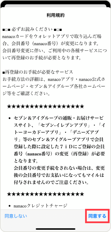 会員規約を確認し「同意する」をタップします。
