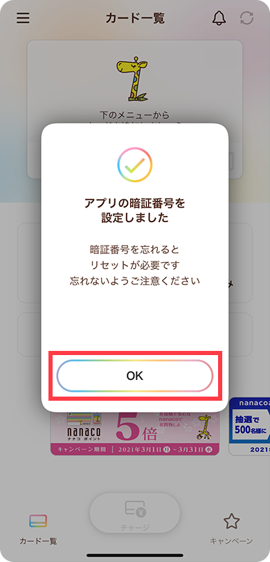 「OK」ボタンをタップします。